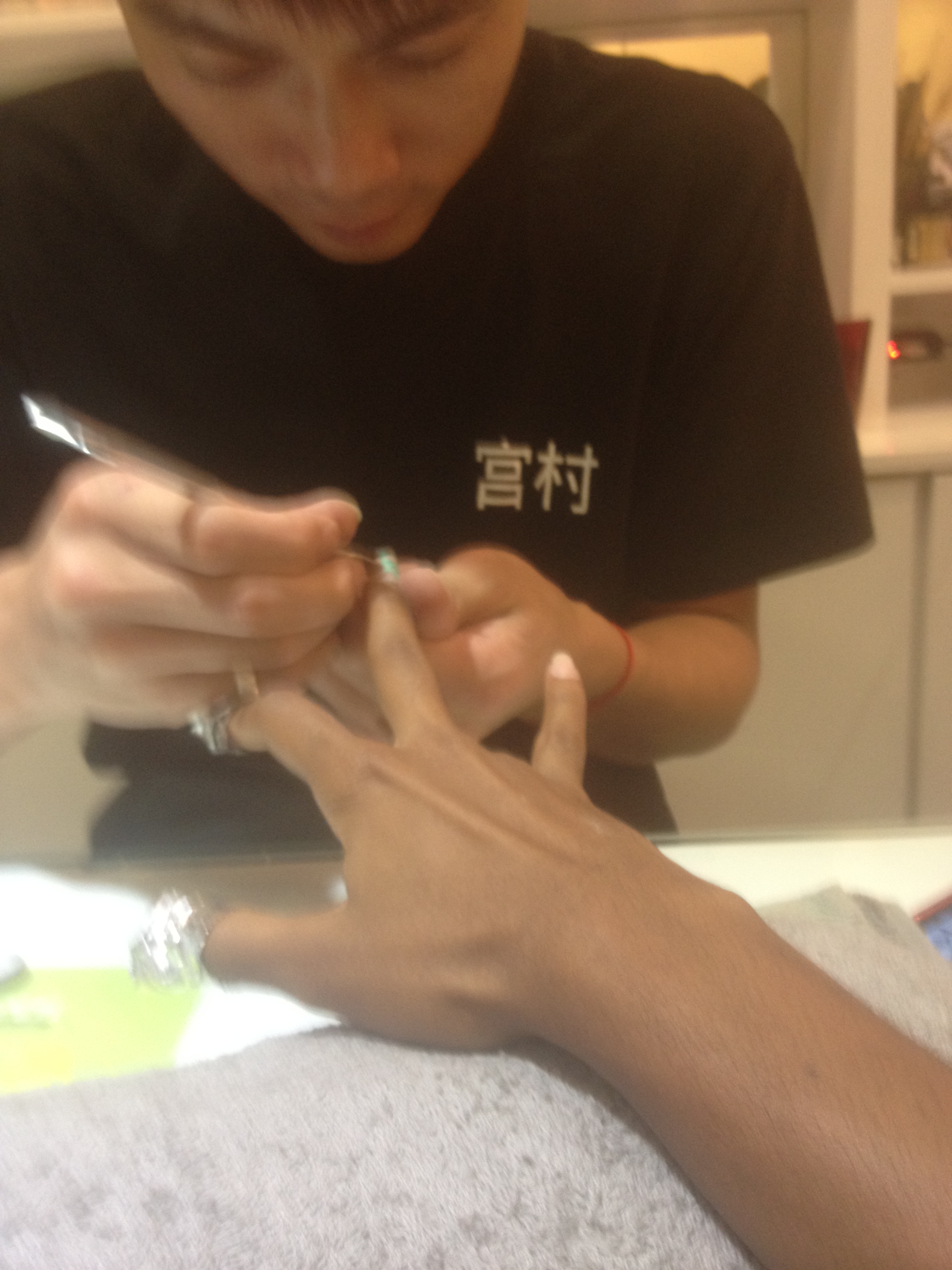 (Oh here, some interesting things about the Chinese salons I’ve seen so far. Men do most of the hair and clearly some of the nails here. This particular salon did both hair and nails and men dominated it both as employees and as customers. There were a variety of men getting their hair cut or coloured, and what’s more, a dude calmly and confidently walked to the back of the salon to where we were getting our nails done and sat next to us for his own manicure. No gel though. In addition, at Chinese salons they don’t shampoo hair, with the head reclined in a sink under running water. They seem to wet the hair and then do the shampoo with the client sitting completely upright in the chair with all the foam and shampoo on their head and THEN take them to rinse it. Maybe to conserve water? I don’t know).
