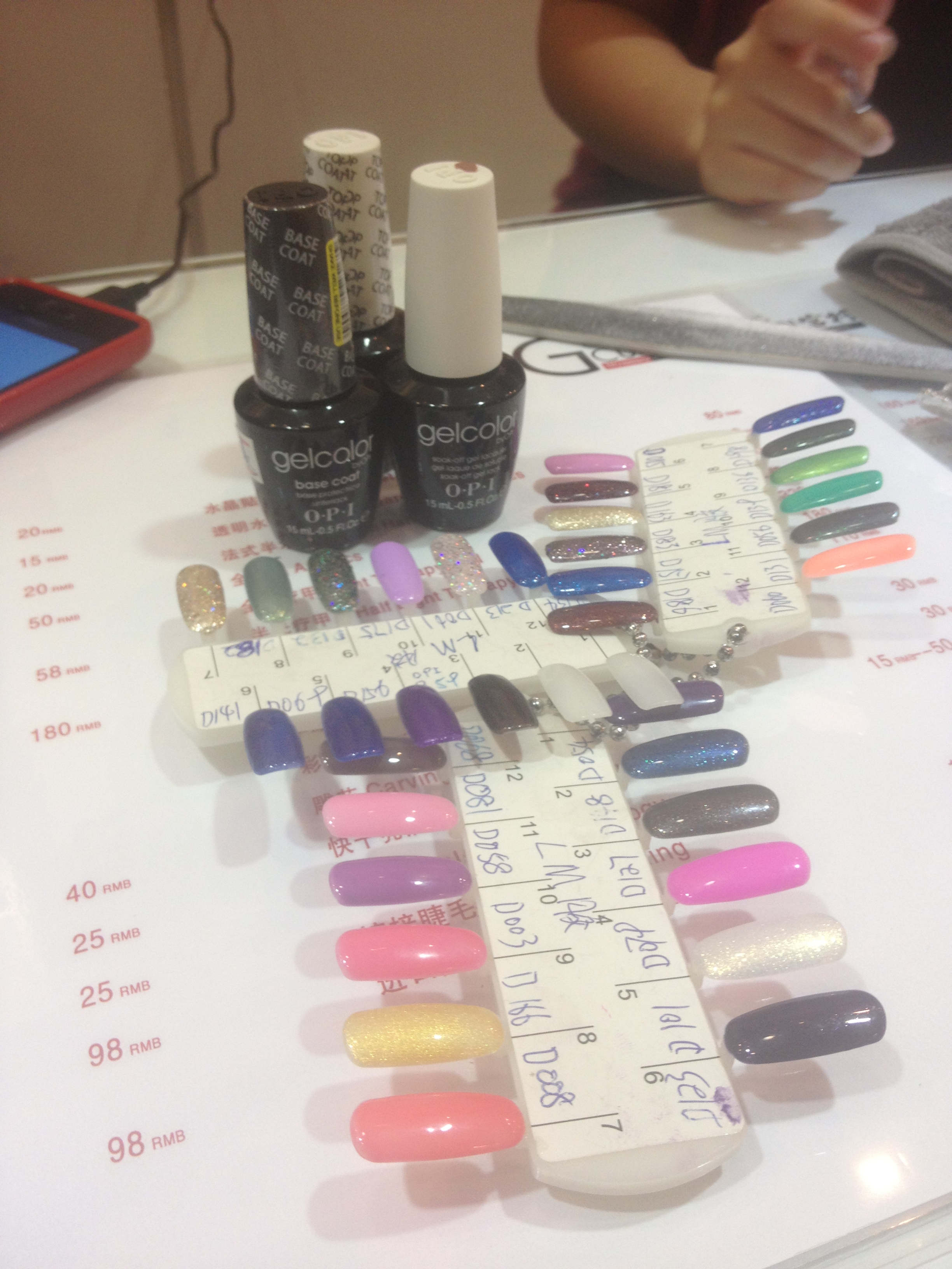 Finally, Sarah and Jenny found a place that did gel manicures for a cool 110 RMB plus 20 RMB to soak off the original gel polish. On return visits, you wouldn’t have to pay the soaking off cost. We were sold.