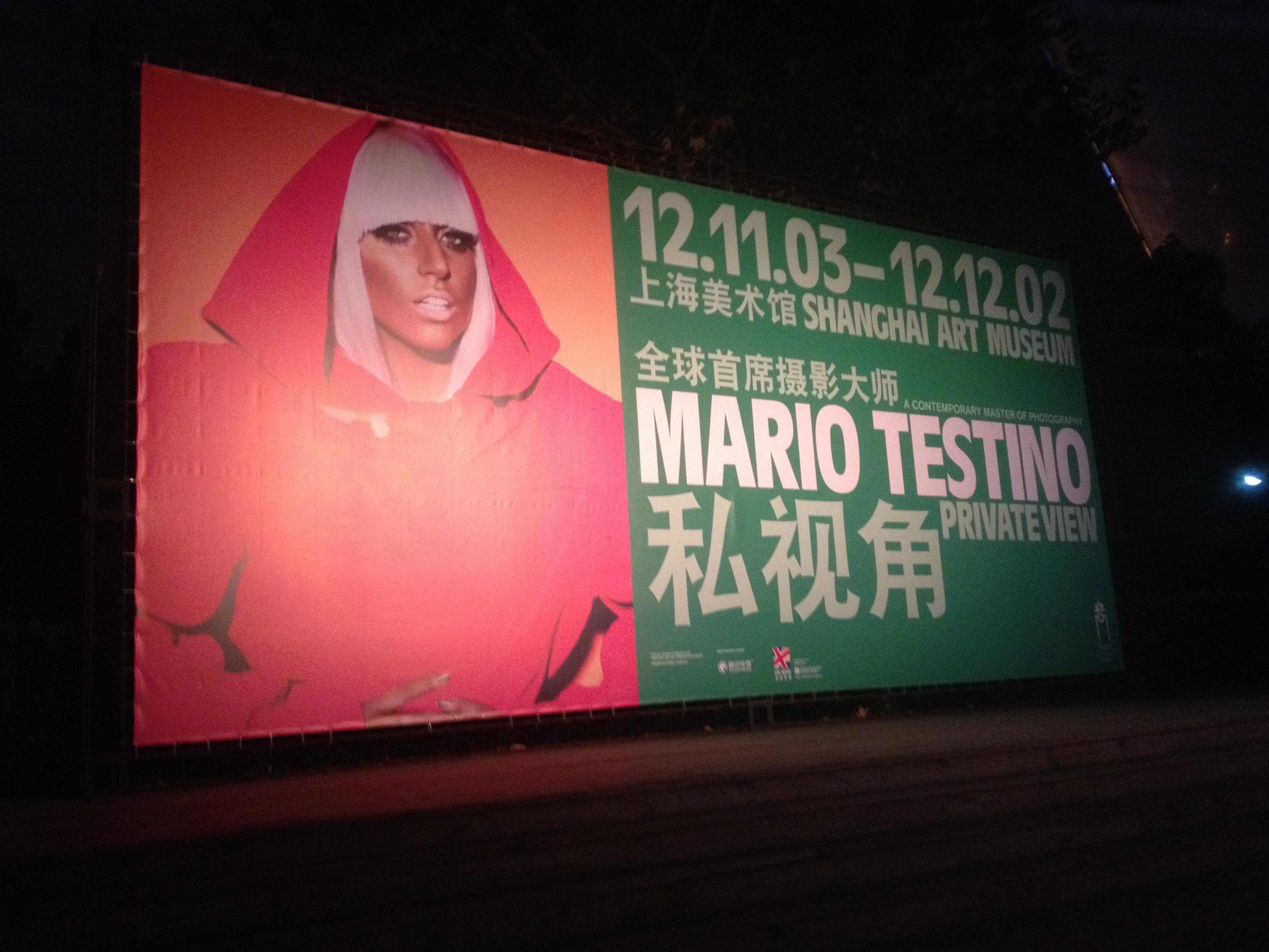 So as I mentioned before, my roommates and I were lucky enough to receive invitations to the opening of Mario Testino’s Shanghai show, “Private View” at the beginning of this month. The name was apt. This is probably the fashion-iest event that we’ve been to so far. And I don’t know why I was surprised to discover that Testino actually showed up to the thing. It was a big deal complete with yelling papparazzi, the Editor in Chief of Vogue China and other famous Chinese people (I presume). The best part was he was walking around with a little mini point and shoot camera taking his own personal pics of the event!