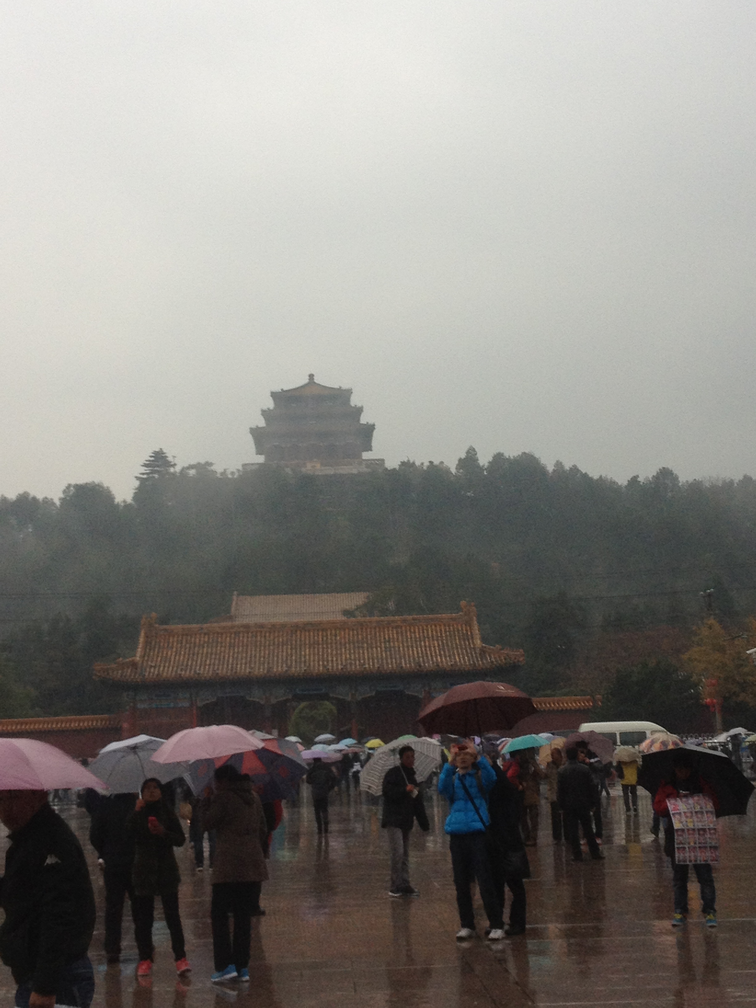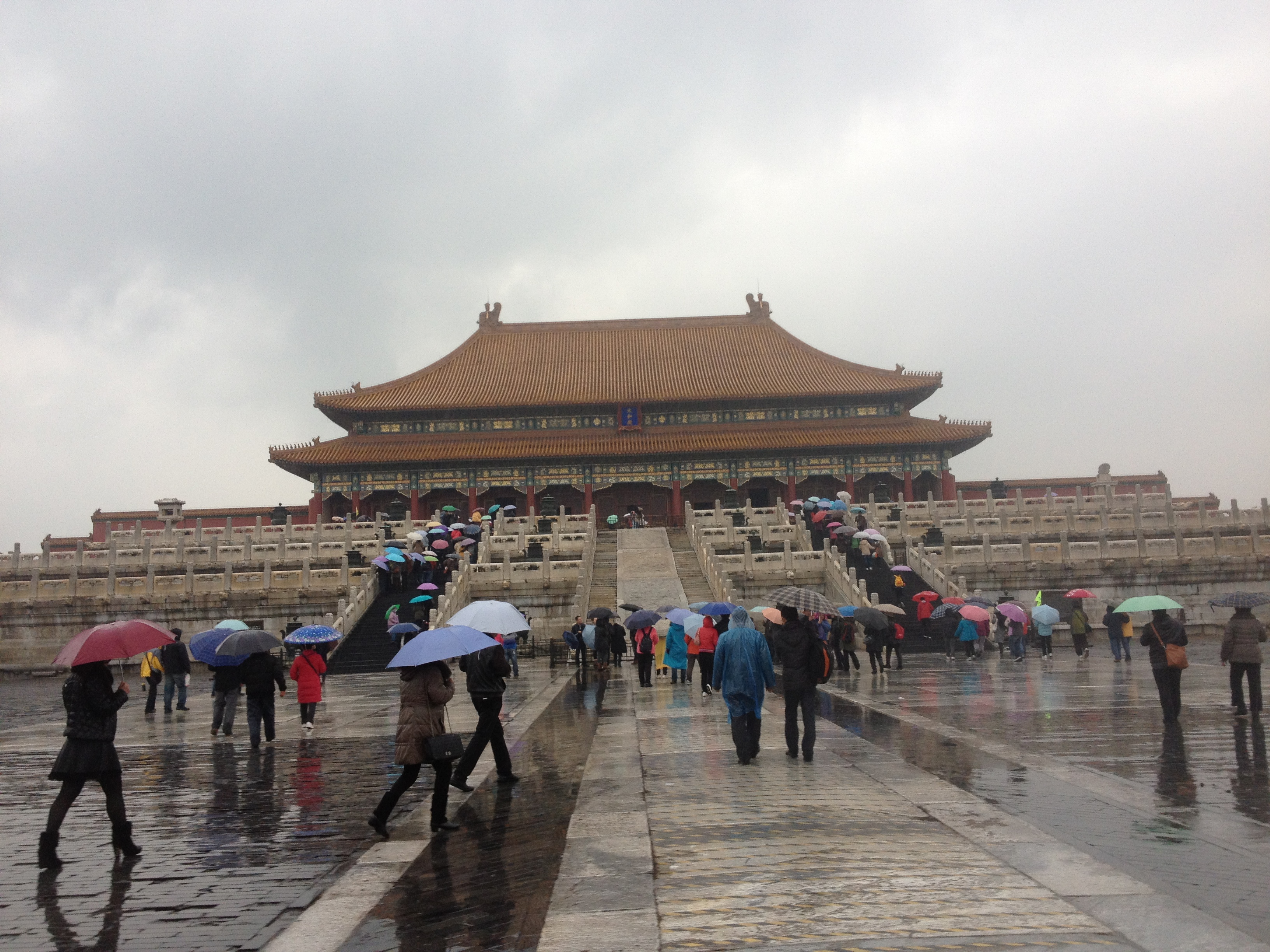 On Saturday we went to the Forbidden City, the grand imperial palace of the former Chinese emperors. It was raining. A lot. In fact I had to go back to the hotel to change my silly non waterproof boots. When I got back I was with my friend Damon, who is studying in Beijing, and I made him and his other friend pretty much race through the freezing rain through the Forbidden City which is an ALL outdoor tour. Not pleasant. Damon kept stopping to take pics and I couldn’t help but think, “Dude. You live here. You can come back any time. Let’s GO!” Sour is an understatement. I still managed to hastily snap some pics. Thank God for Lifeproof iPhone cases.