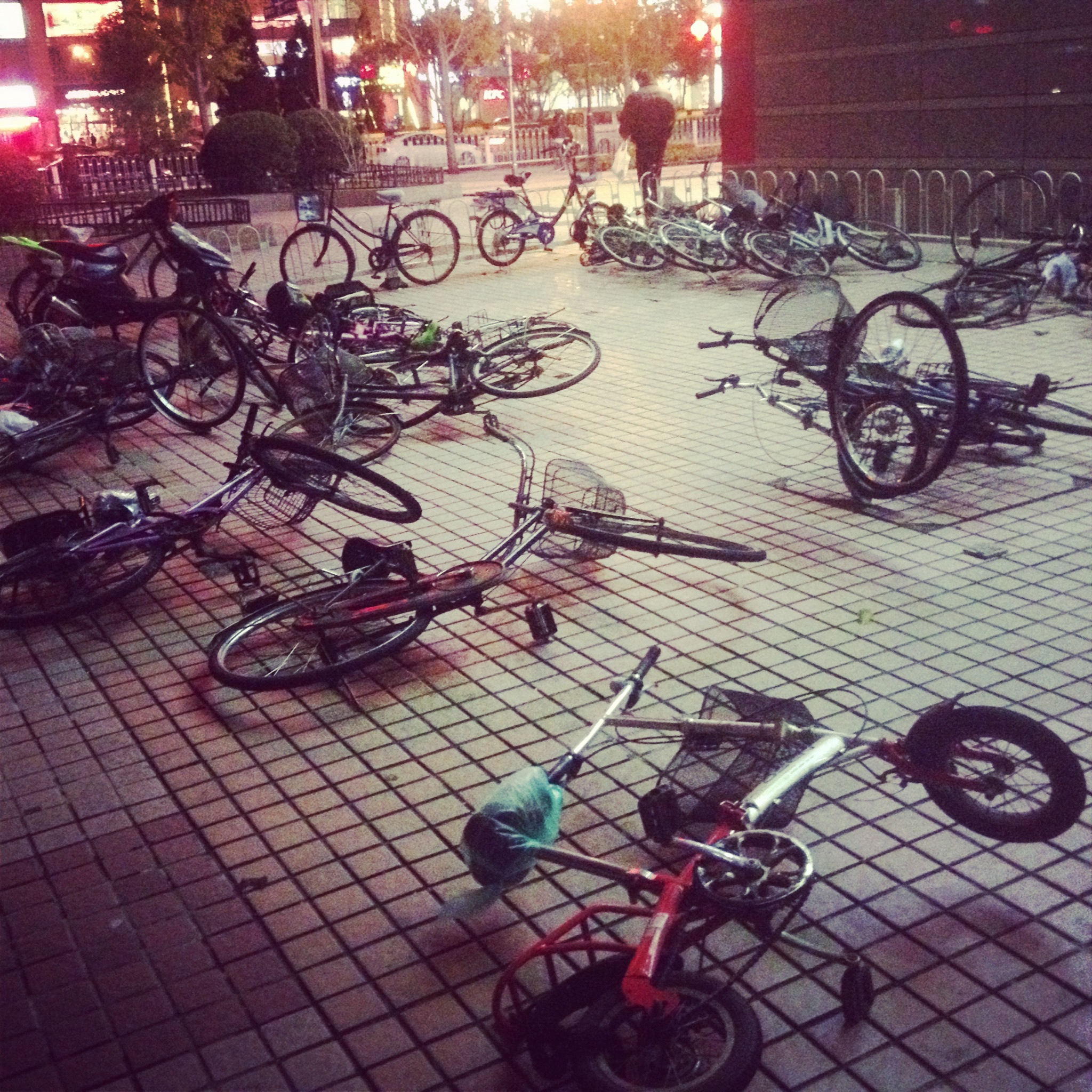 These are bicycles and scooters that the wind had blown over on Saturday night. On this same Saturday night Sarah heard an announcer on the radio urging people not to leave their houses the next day because of the cold winds and harsh temperatures. And where were we planning to go? Oh just to the Great Wall of China.