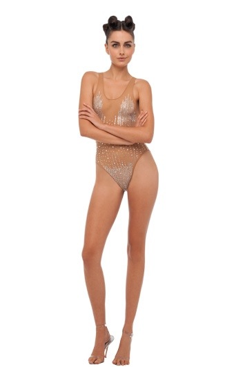 This Norma Kamali maillot will set you back USD $450 at Barneys and TTD $150 at your favourite bikini waxer. Image courtesy http://www.barneys.com$225 at Nasty Gal. Image courtesy http://www.nastygal.comRhinestones, mesh, and near nakedness SCREAM Carnival. This price, however, does not. Norma Kamali Nude Double Layer Mesh Body Suit with Silver Stones – USD $950. Image courtesy http://www.normakamalicollection.com
