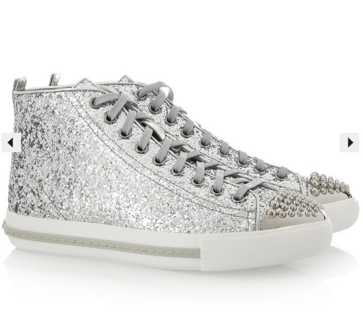 Limited edition Nike New York sneaker wedges (I’m assuming they’re Sky High Dunks. Correct me if I’m wrong) I’ve been seeing making the rounds on Instagram lately. Image courtesy http://www.instagram.com/refinery29Michael Kors Gold Metallic Glam studded High Top – USD $195.00. Image courtesy http://www.michaelkors.comForgive the poor screenshot. Jimmy Choo Glitter-finished leather sneakers – USD $465.00. Image courtesy http://www.net-a-porter.comScreenshot of Tod’s AMAZING jeweled loafers. Price upon request. You know what that means…Miu Miu Glitter Finish High Top sneakers – USD $550.00. Image courtesy http://www.net-a-porter.com