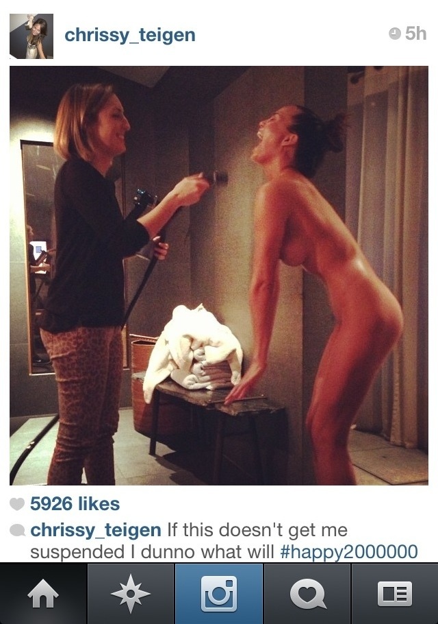 Now we’ve all seen Rihanna naked so many times that it’s no longer headline news. Now it’s more about her new creative ways to be naked. But fully naked Chrissy shocked me a little, and yet didn’t shock me at all (she’s a friend in my head so I feel like I know her).
