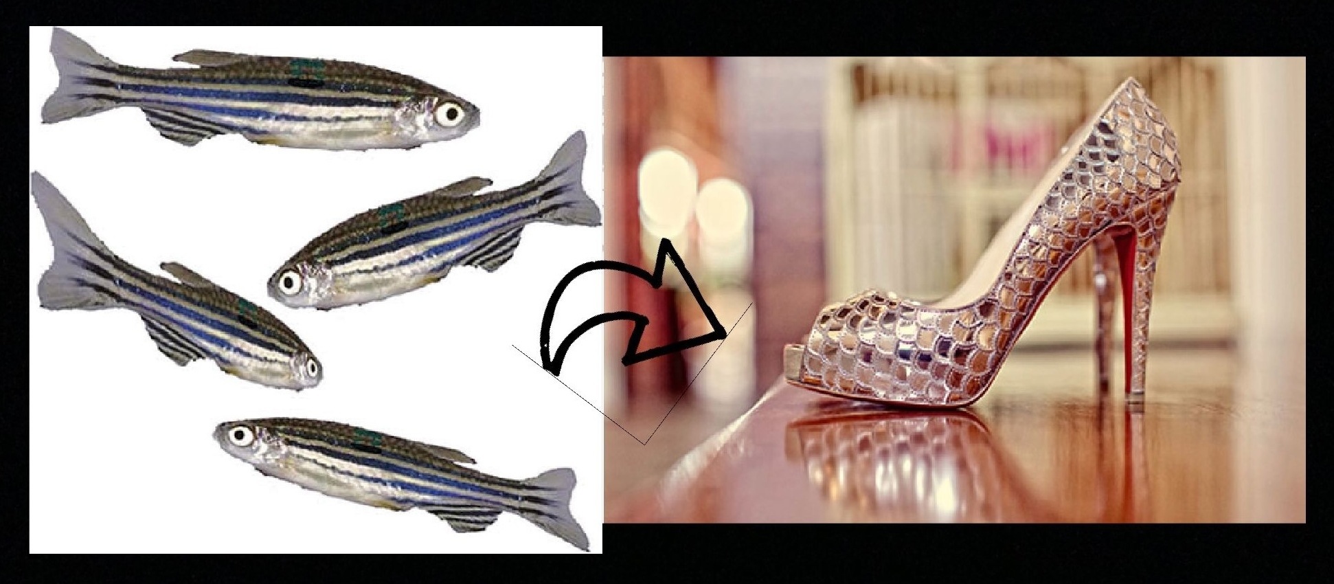 Left : Zebrafish Right: Mirrored fishscale Louboutins. A logical progression, no?