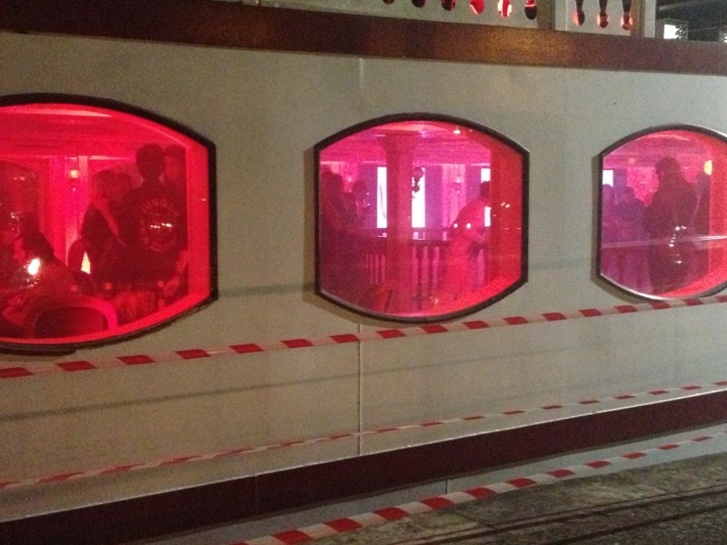 Automatically the scene became like the opposite of Titanic. People, most of them men, began thronging the entrance forgetting about looking cool. There was pushing and shoving and mashing of feet. A dude tried to jump on the boat. Nervous Nancy kicked in hard. I extricated myself from the line/crowd (at which point I happened to glance through a boat porthole. Capacity my ass! The dance floor was spacey!!) and within 25 minutes I was on the Metro back home.