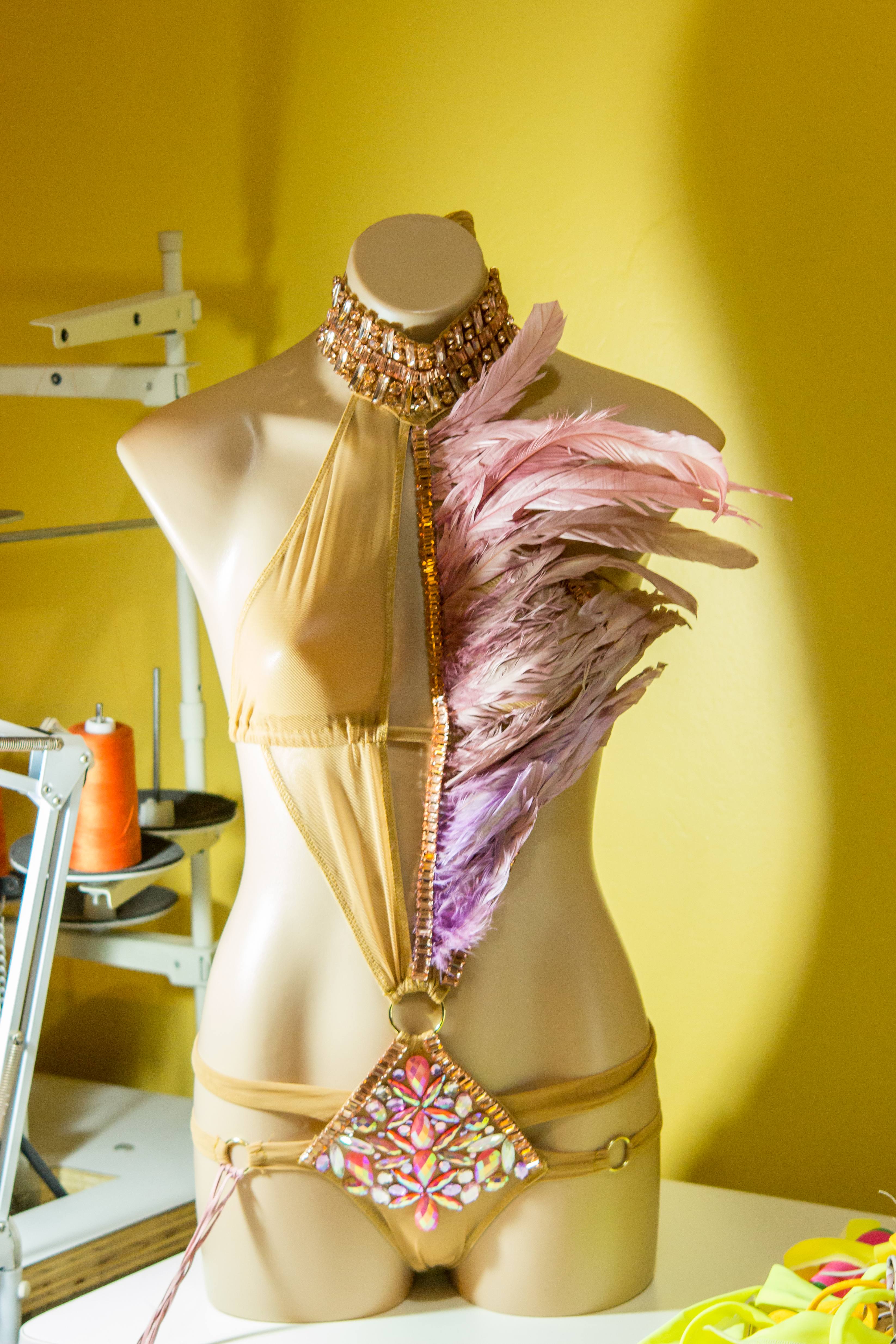 Though we had a long Carnival season this year, Carnival week still managed to sneak up on me. As I mentioned before, I I had purchased all my materials in January, but by the Sunday before Carnival I had a completely sheer monokini as my costume base and nothing attached to it.