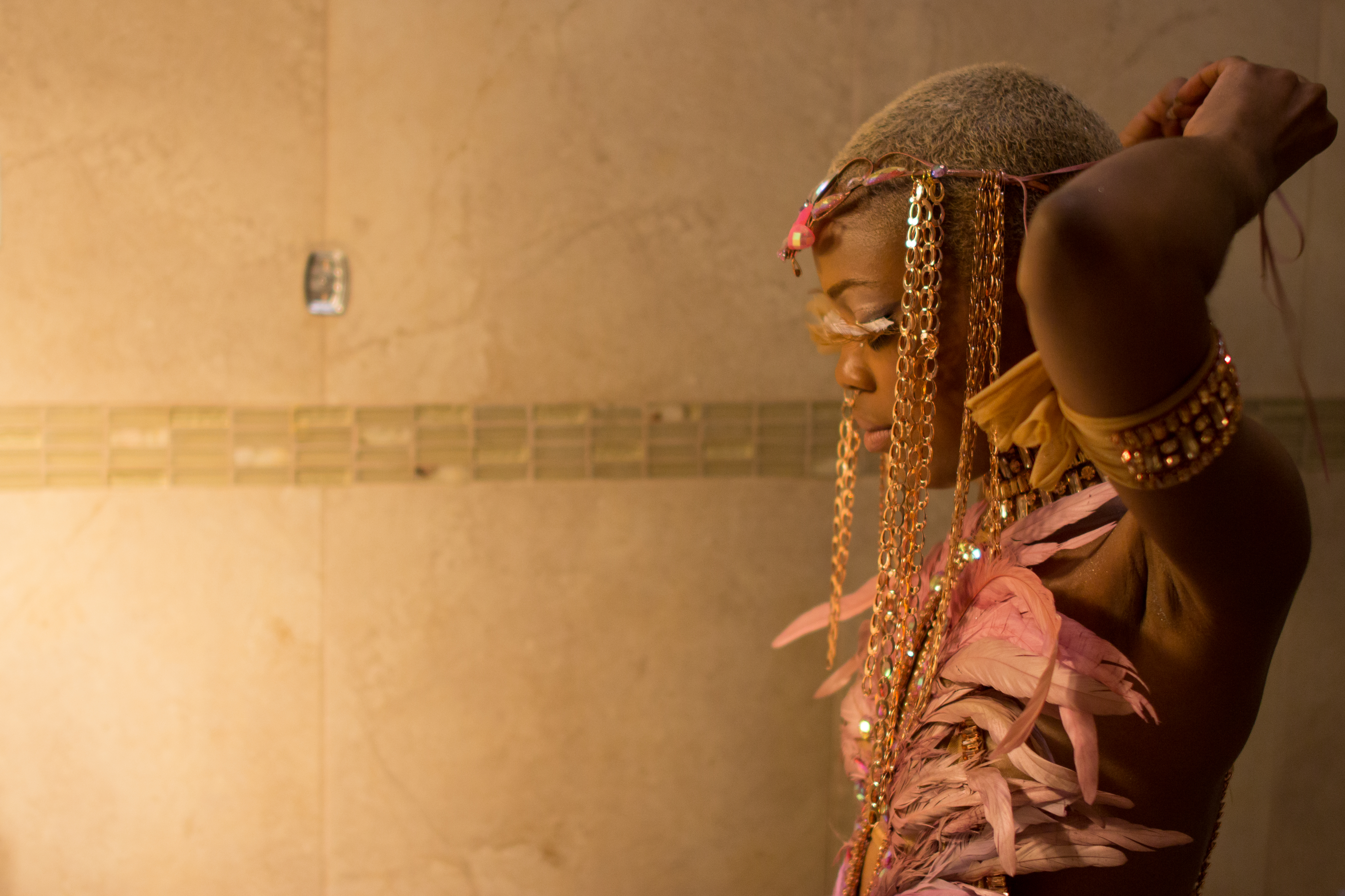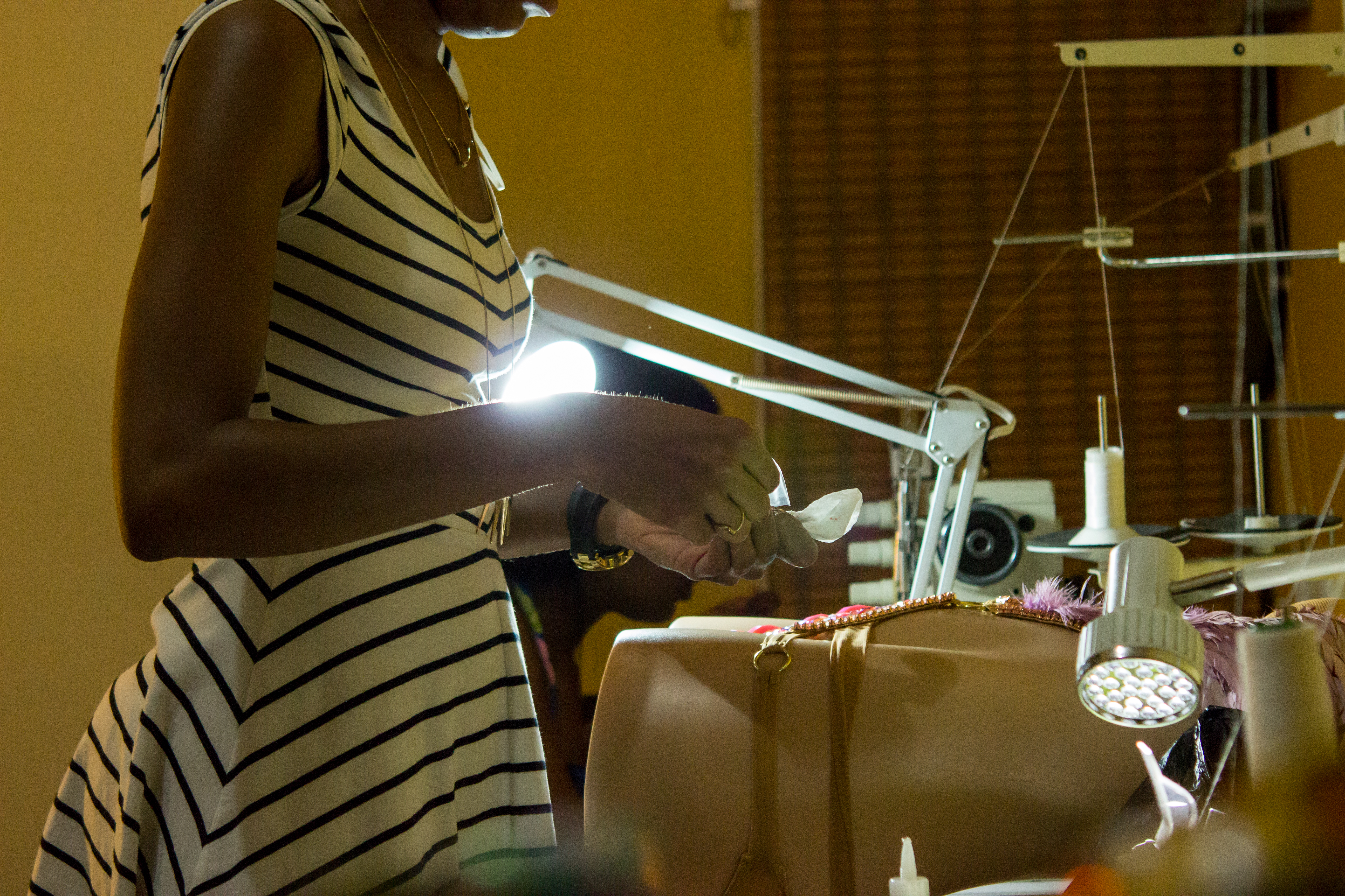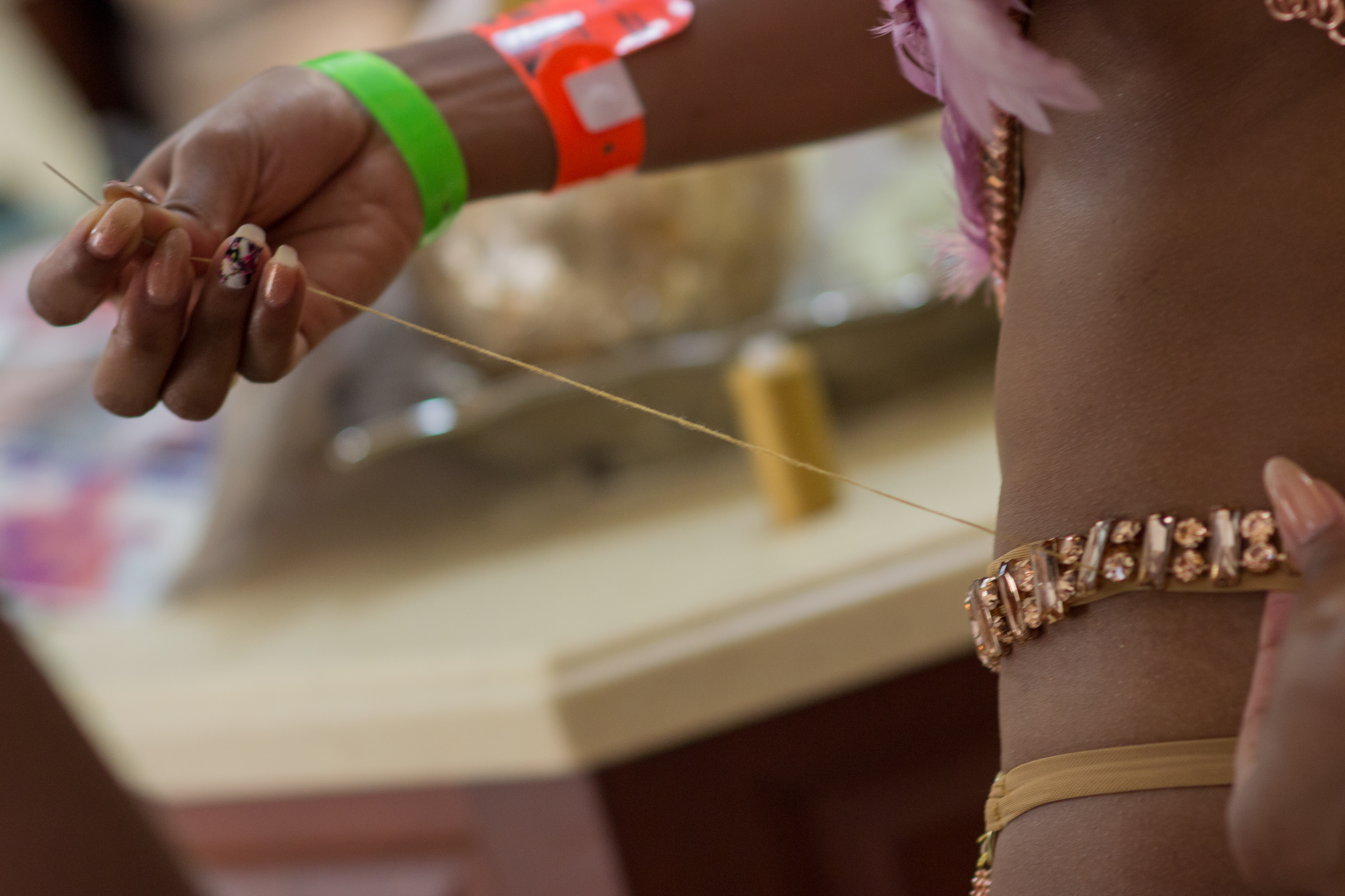 A lot of my costume work was done at the Liilah Workshop, which was bustling out Monday Wear and bathing suits throughout the Carnival season. Designer Lisa Marie Henry, sewed my monokini out of a nude sheer mesh that she hand dyed to match my skin tone. I was so impressed with Lisa this season and how she was able to not only bring together my monokini from a handful of disparate images that I gave to her, but do the same for countless other clients, and manage her time to make sure it was all complete by Carnival Sunday night. Big up to her assistants Vanessa, Ornella and Aquila who all kept me laughing throughout the entire process.