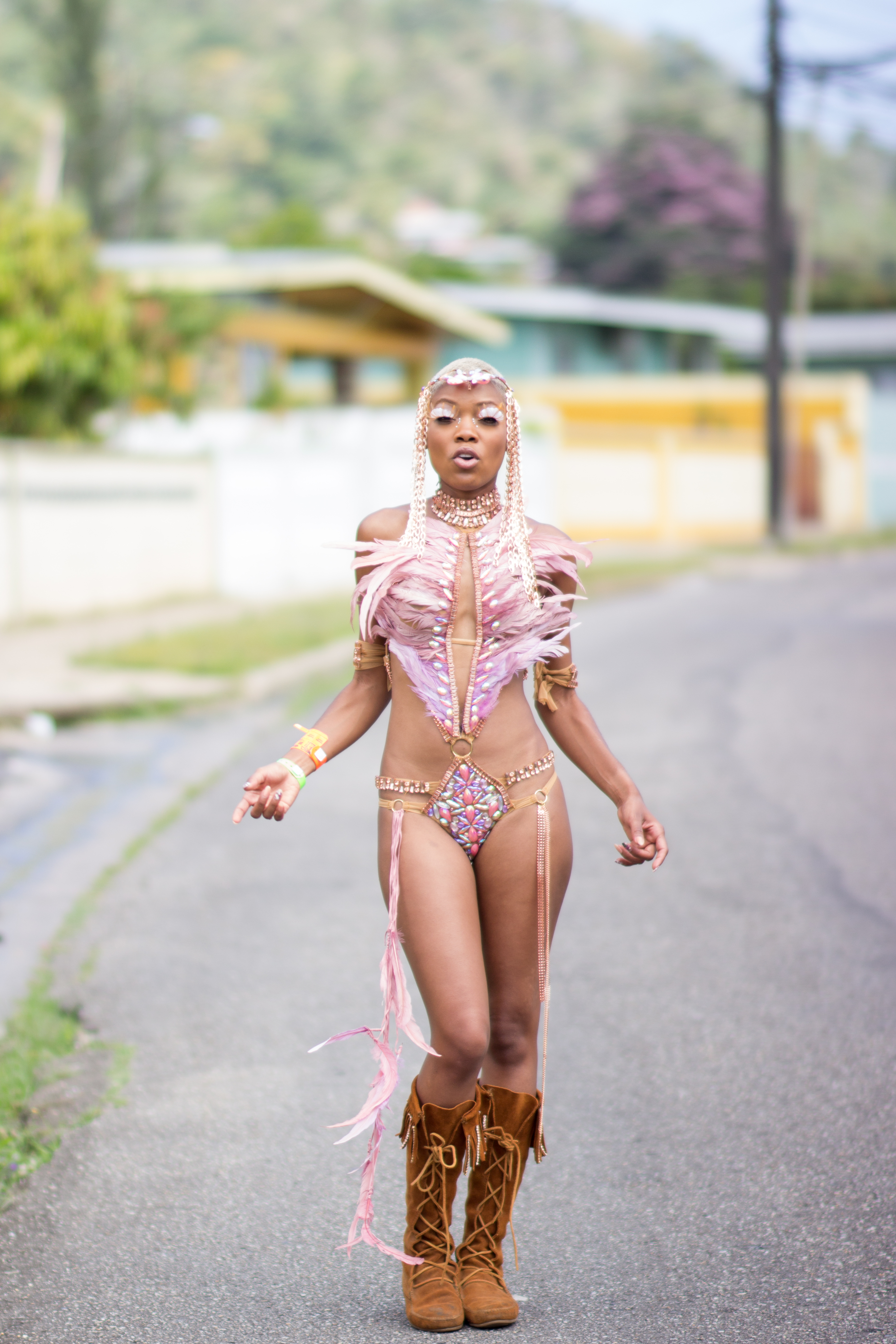 And then, just like that it was Carnival Tuesday morning. As usual I commissioned my father to help with tying of straps, spraying of sunscreen, and, yes, last minute trim sewing lol. After a quick photoshoot with Kyle at the house, I was ready!