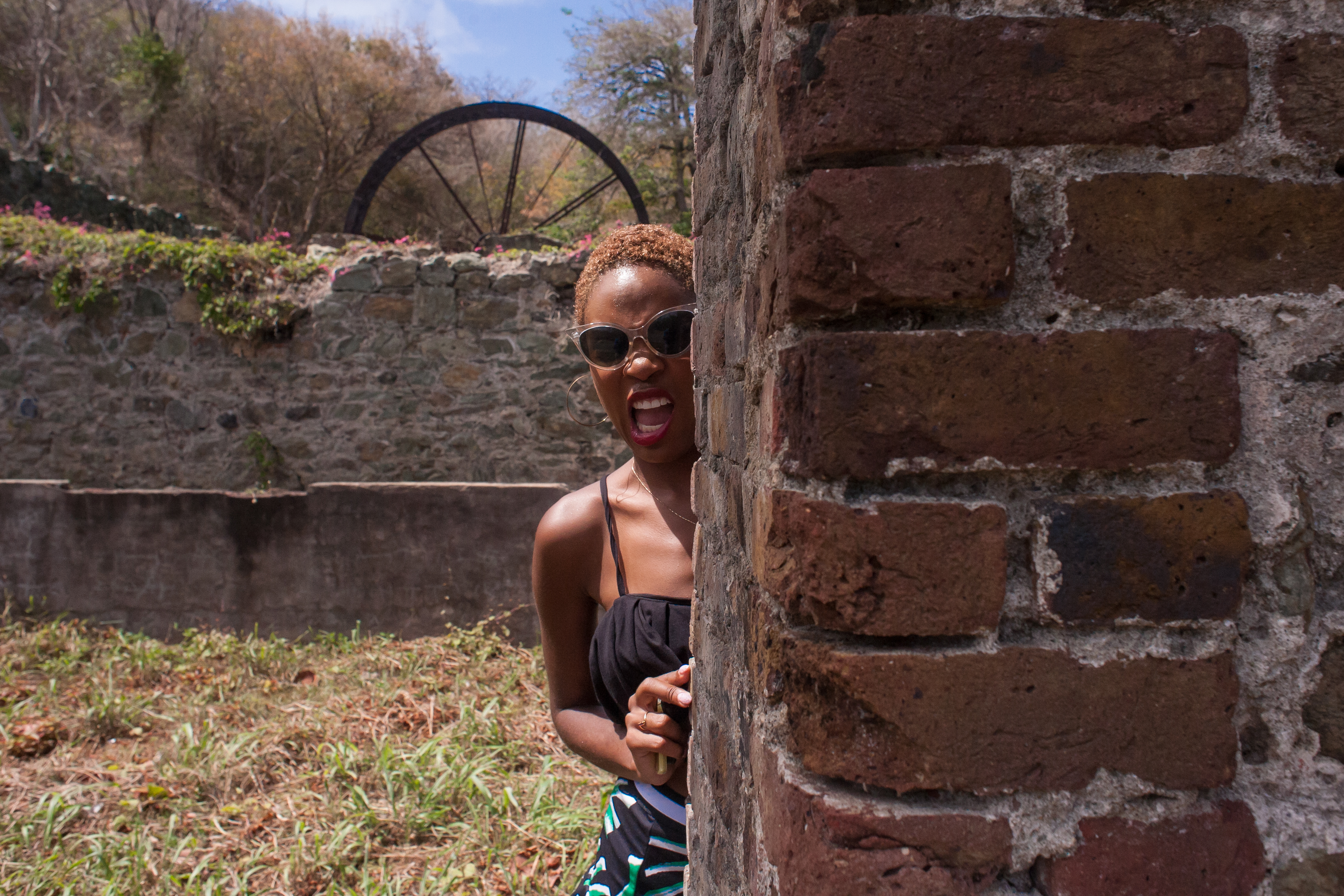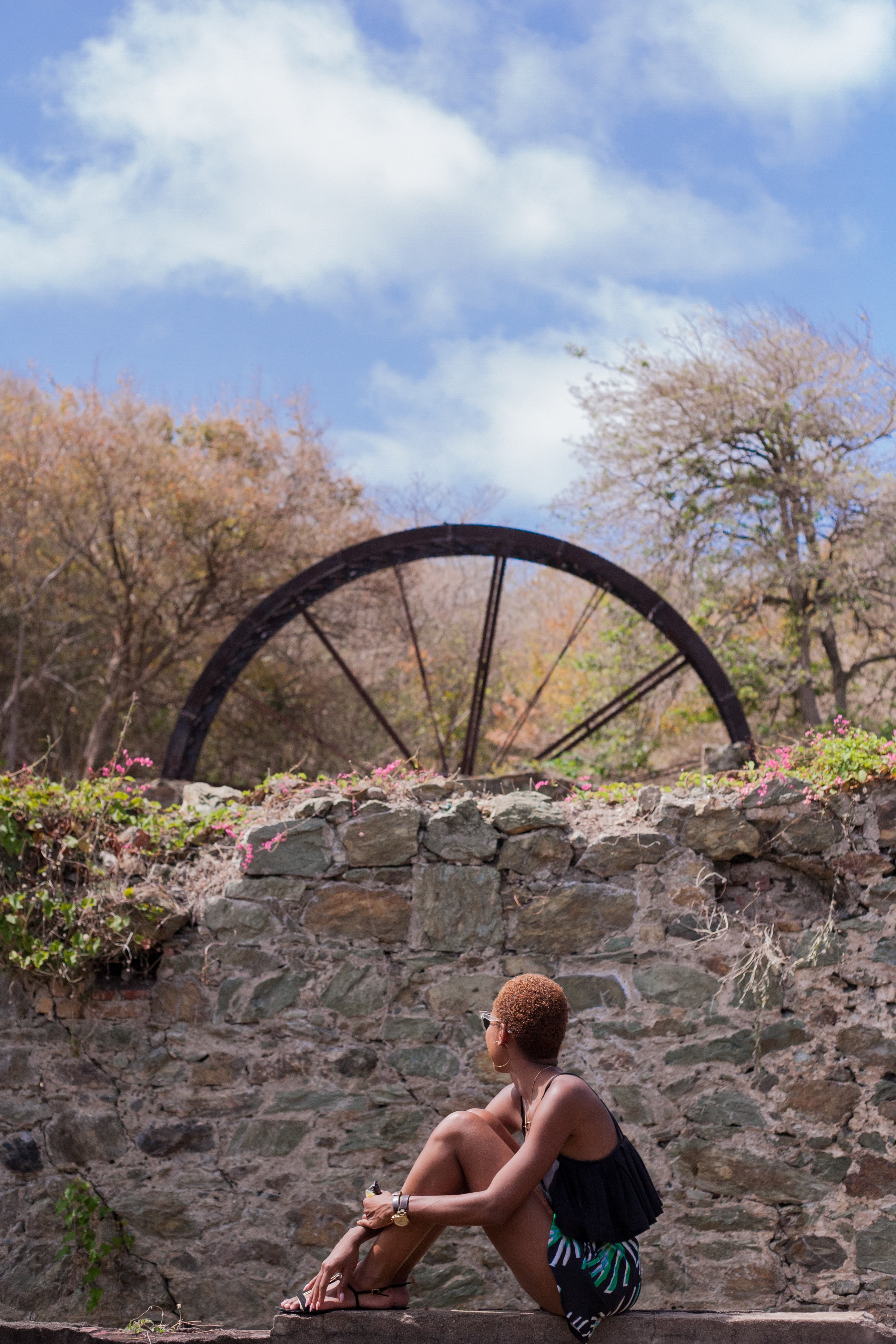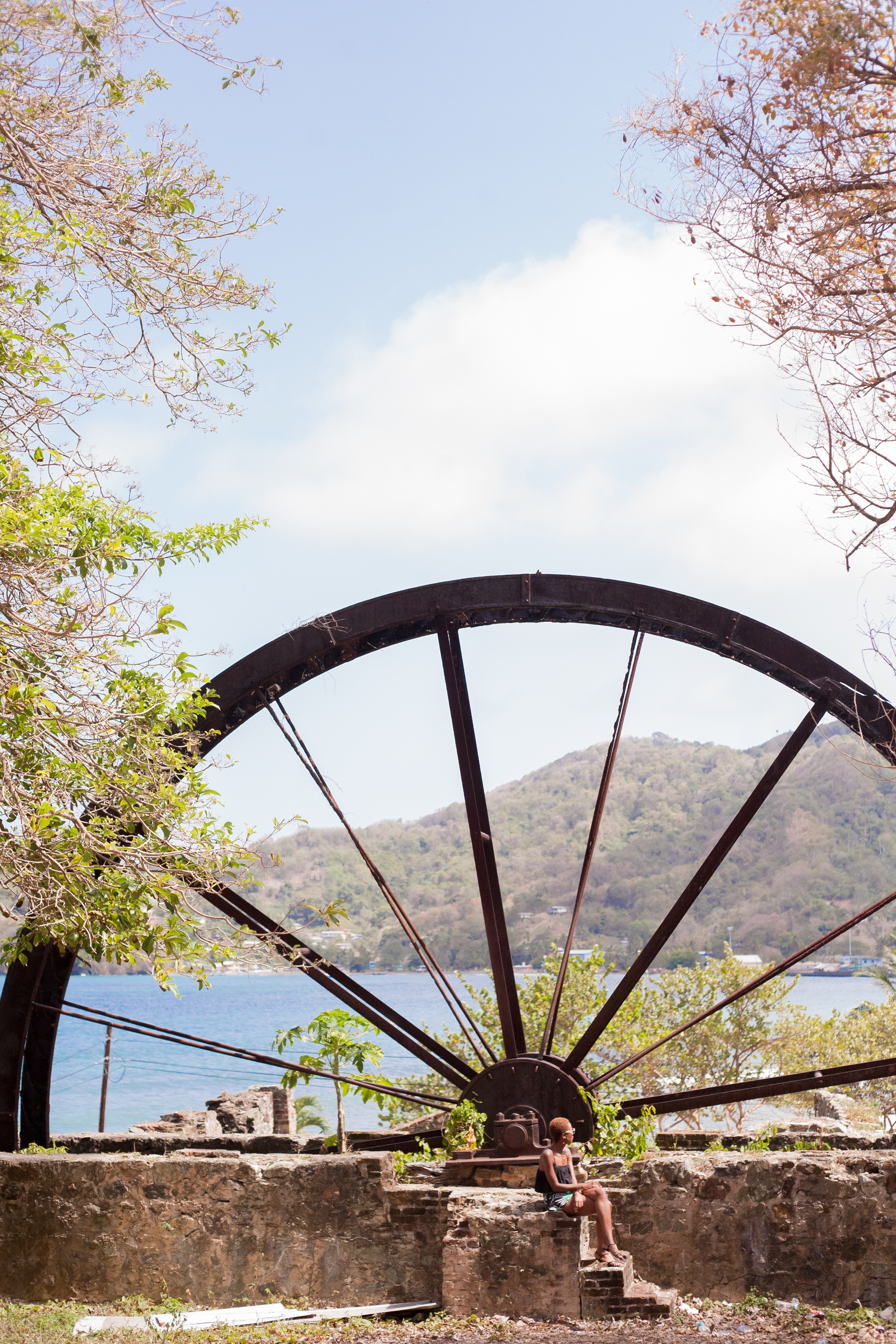These pictures are taken at the Speyside Water Wheel, a relic of an old sugar plantation from the late 18th or early 19th centuries that lies in ruins around it and was literally one of the most interesting places I’ve taken pictures thus far. However, as we often say, “Tobago sun real different” and in most of the pics I look, hot, bothered and molten. So please avert your eyes in the direction of the water wheel.