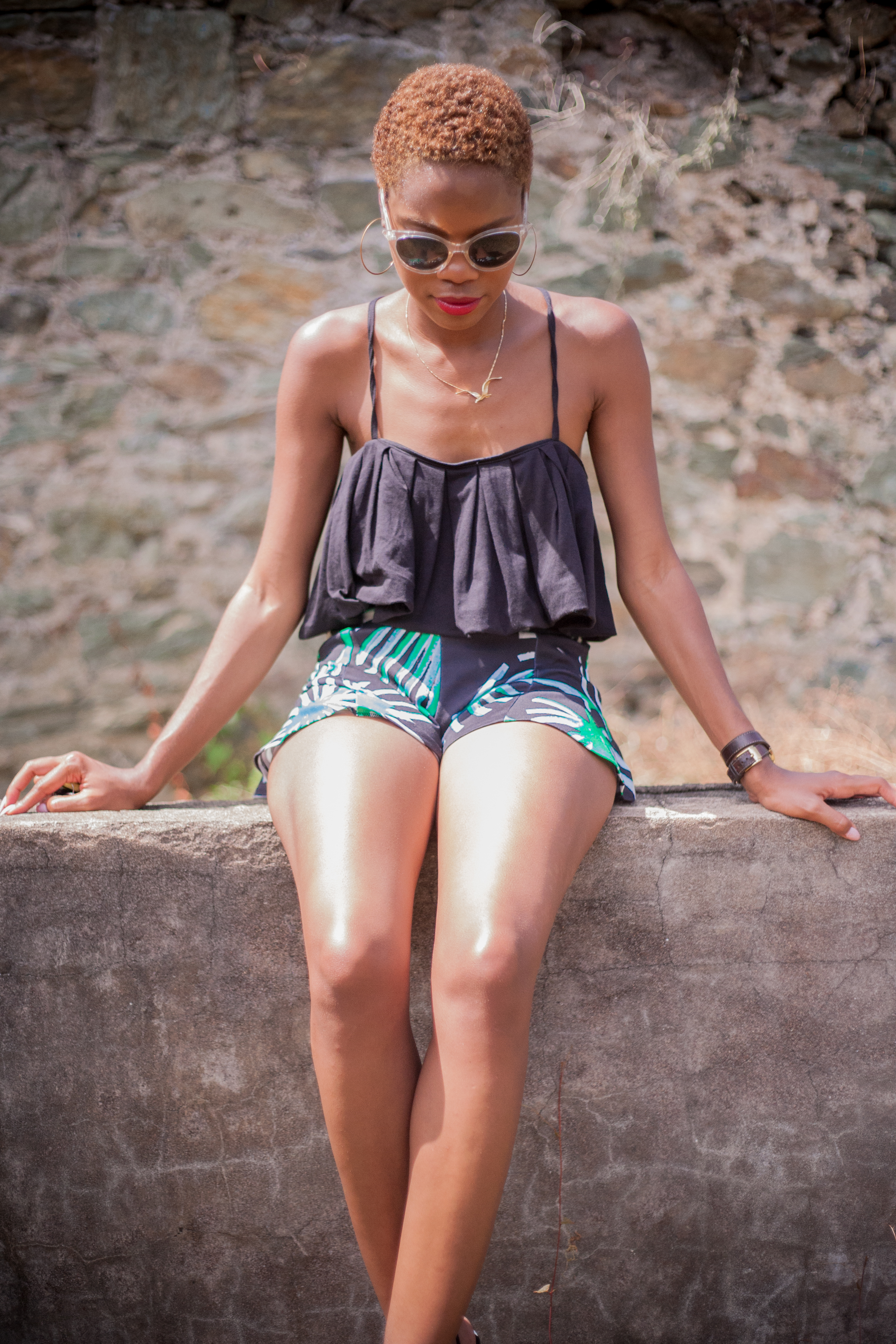 Top: Nastygal; Shorts: Zara; Sandals: Zara; Earrings: Michael Kors; Sunglasses: Nastygal